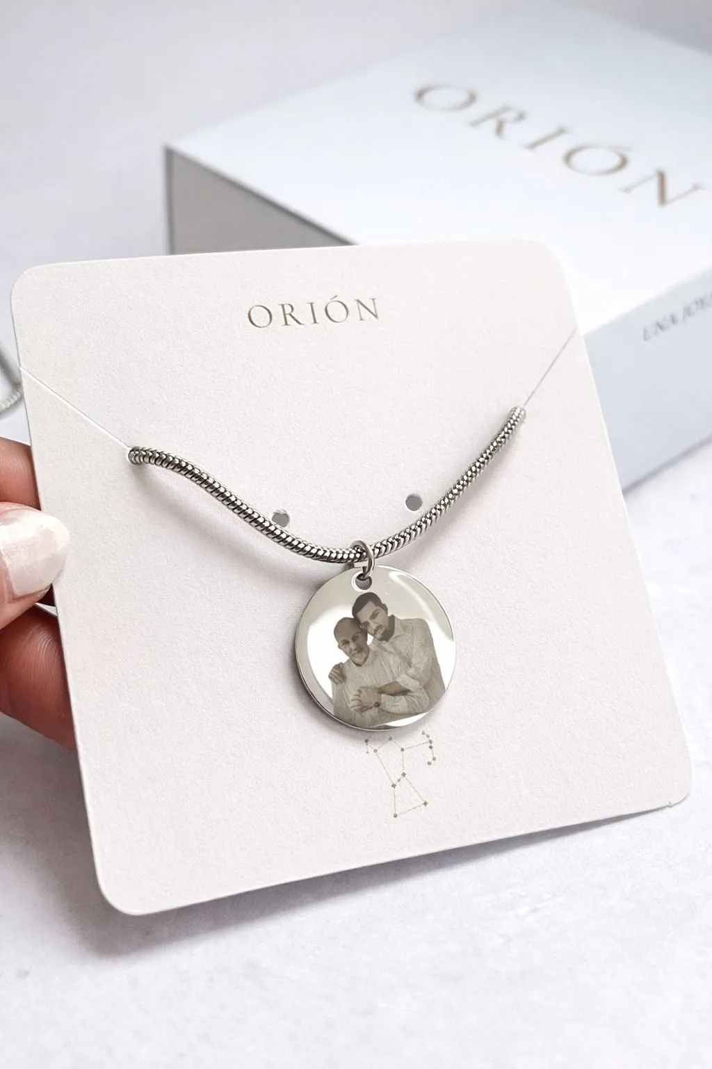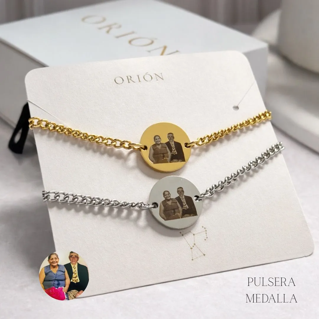 Orión es un emprendimiento de joyería personalizada que transforma recuerdos en piezas únicas, mediante grabados a láser de fotos sobre acero inoxidable y baño de oro, creando detalles con alto valor emocional.