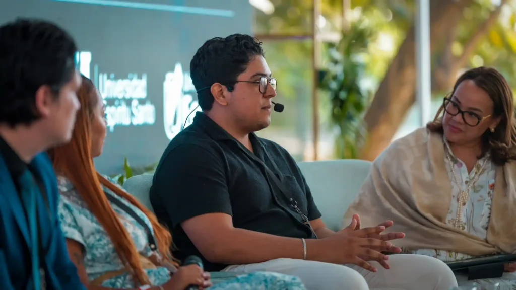 El segundo día, en el campus de ECOTEC, giró en torno al eje “Liderazgo y Transformación”. Uno de los momentos más destacados fue el panel de Emprendimiento, en el que participó Diego Reyes, estudiante de Logística y Transporte de la Facultad de Ciencias Económicas y Empresariales de ECOTEC. Diego es además CTO de la startup Bakano.ec, emprendimiento que forma parte del programa de aceleración de Impulso Ecotec. Su intervención ejemplificó cómo la universidad puede activar talentos internos para convertir ideas en proyectos reales con impacto.
